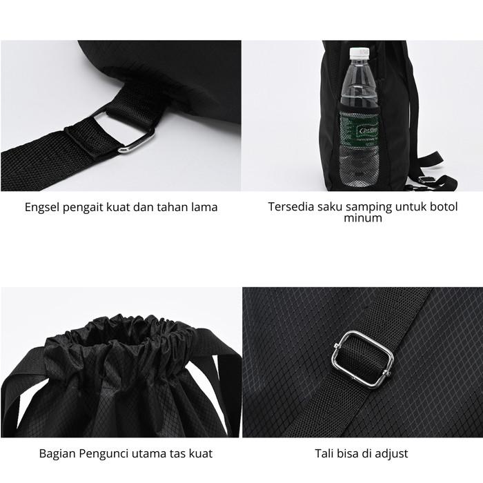 Tas Ransel Serut Pria Wanita Waterproof Tas Travel Umroh Tawaf String Bag Backpack Tas Punggung Multifungsi T 0130 Sb -