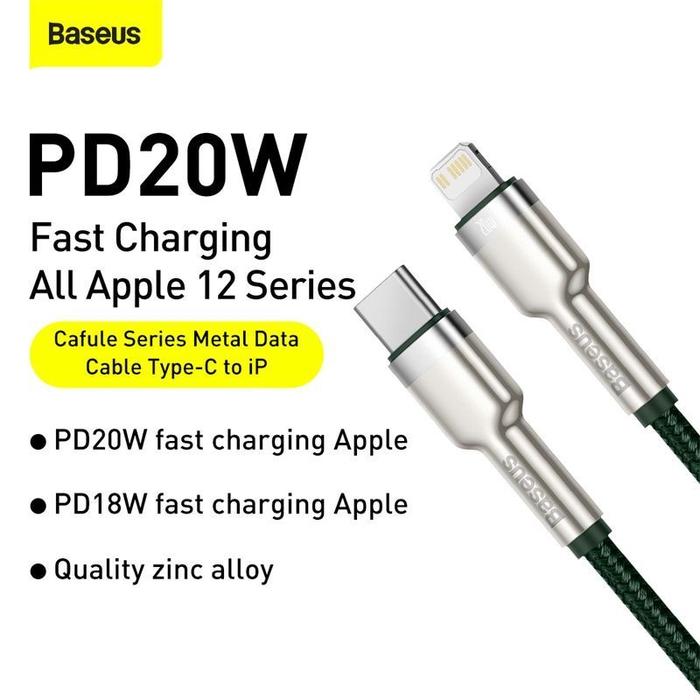 Baseus Kabel Data Cafule Series Type-C To Ip Pd 20W Metal Data Cable - Hitam 1M