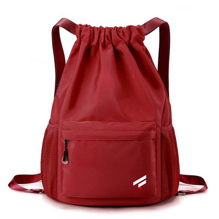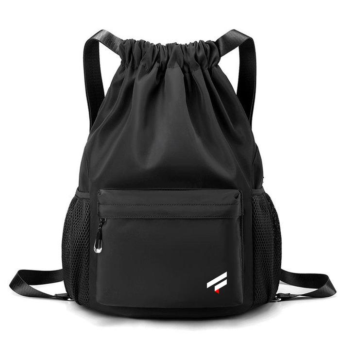 Arline - Tas Serut Sekolah Motif Logo Simple Unisex Warna Hitam Backpack - Hitam
