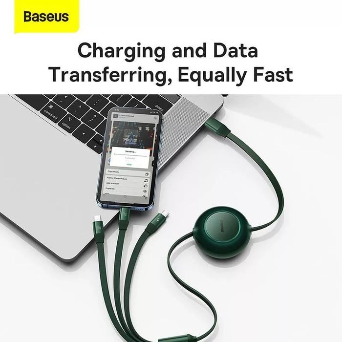 Baseus Kabel Data Bright Mirror 2 Series Retractable 3-In-1 Type-C To Micro Lighting Type-C Fast Charging Cable Charger