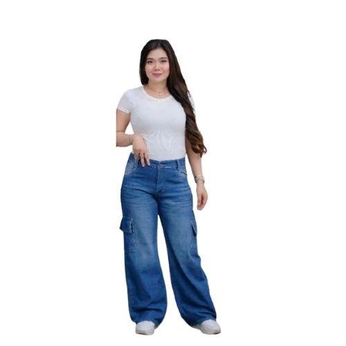 Celana Cargo Baggy Jeans Highwaist Celana Unisex Gombrong Kargo Premium Tebal || Kulot Kantong Samping Korean Stayle - R