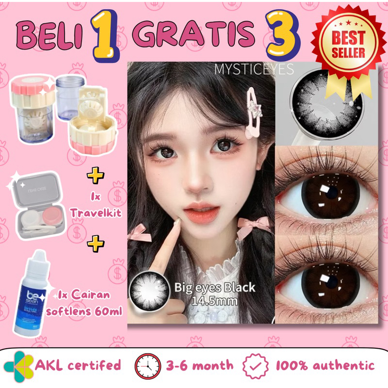 [Beli 1 Gratis 3] Softlens mysticeyes [Gratis] Cairan 60ml + Travelkit + Alat Pencuci