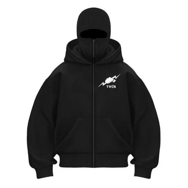 Thousand Sweater Hoodie Balaclava Zipper Jaket Boxy Hitam Unisex Distro Fleece Tebal Pria Wanita - Hitam Thousand, M