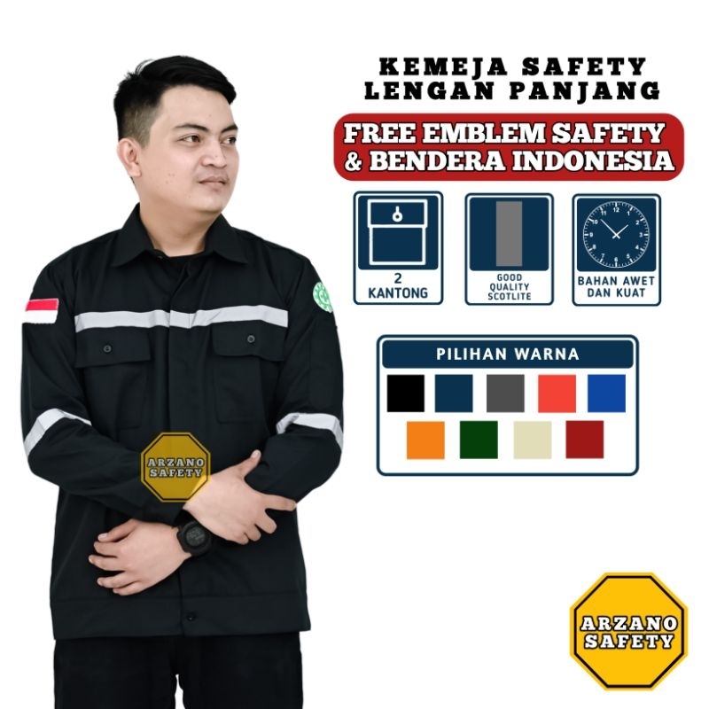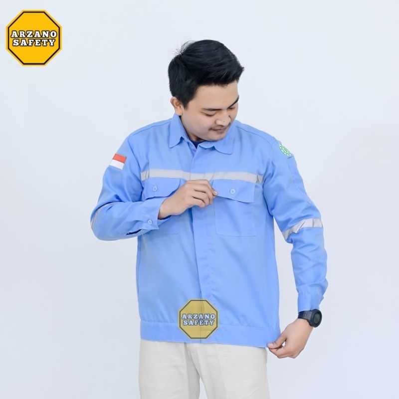Baju safety lengan panjang seragam kerja lapangan kemeja proyek atasan bahan premium