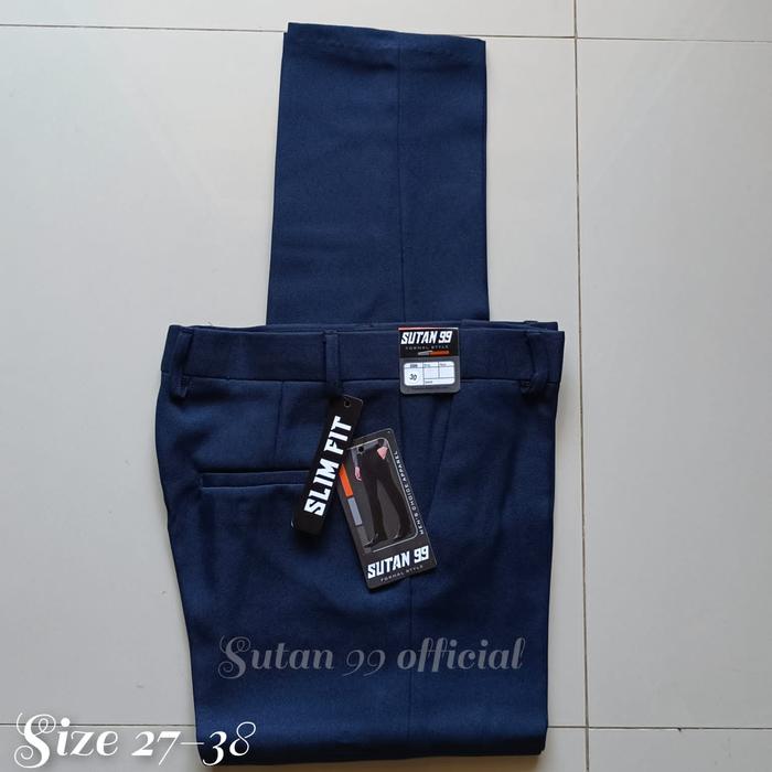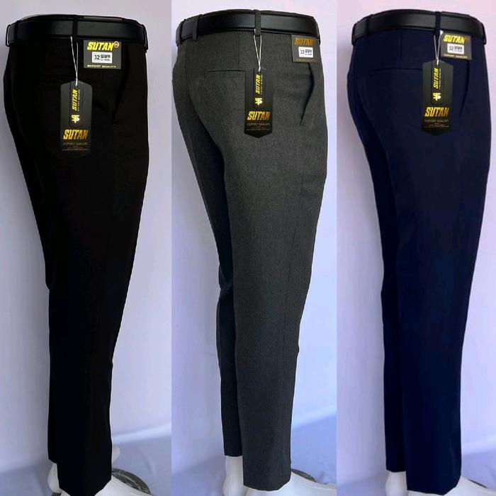 Celana Panjang Bahan Formal Pria Terlaris Polos Regular Violet Line Elegant - Hitam, 27