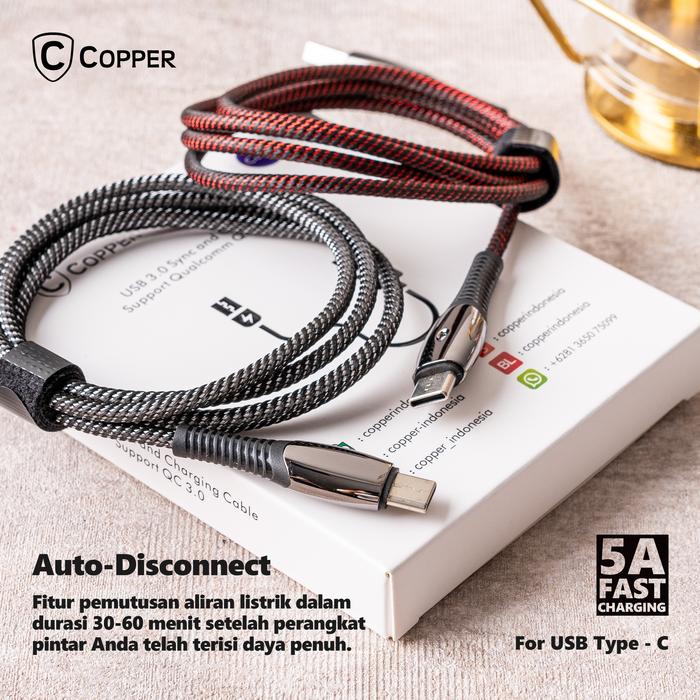 Copper Auto Disconnect Cable Chrome Series - Type C Fast Charging - Hitam