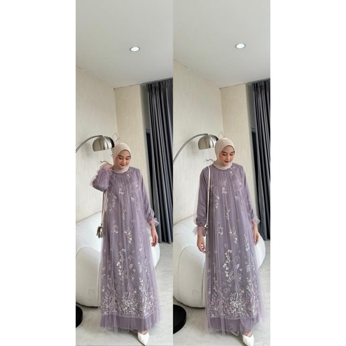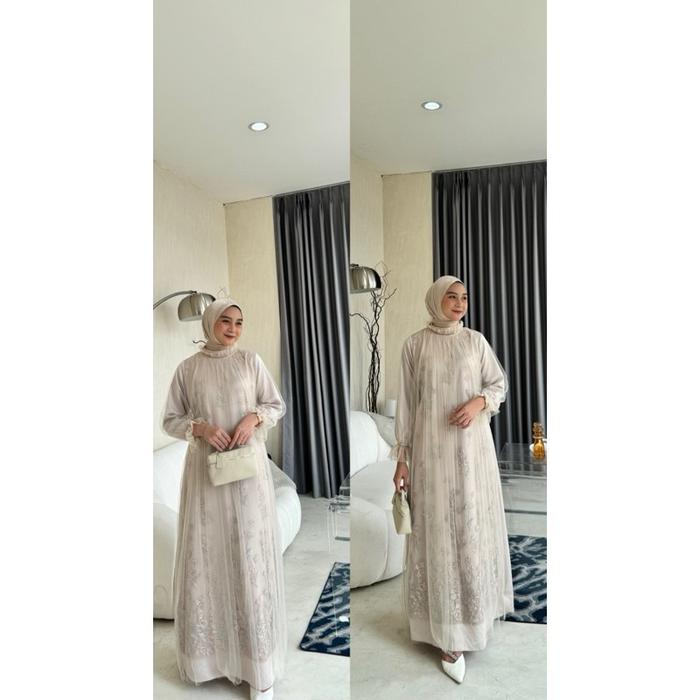 Renia Dress Pesta Kondangan Seragaman Bridesmaid Wisuda Silk Premium Mix Brukat Cantily Busui Jumbo - slver, M
