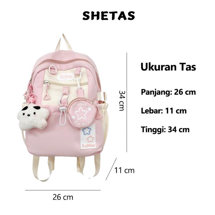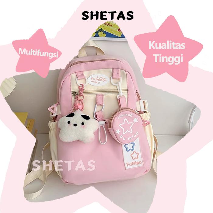 Shetas Tas Sekolah Wanita Lucu Warna Pink, Biru & Kuning + Gratis Sampel | Ransel Serut Kapasitas Besar, Multifungsi & M