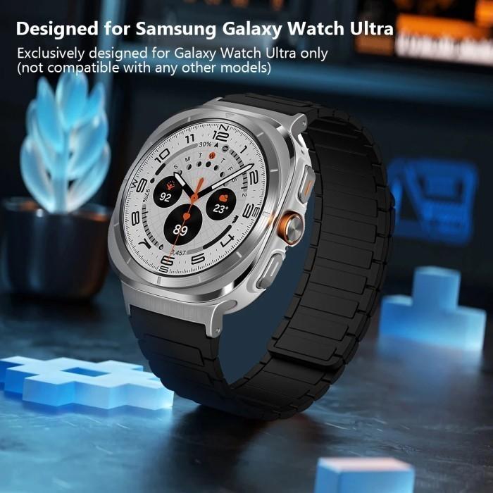 Strap For Samsung Galaxy Watch Ultra Magnetic Strap Silicone Band Tali Jam Silikon Cover Smartwatch Protection - Black,