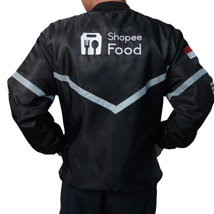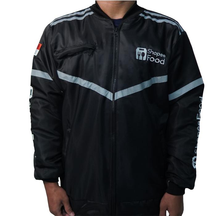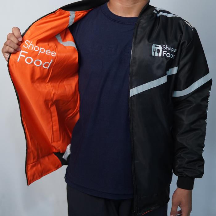 JAKET BOLAK BALIK PRIA - JAKET BOMBER HITAM OREN - JAKET SHOP33 FOOD BOLAK BALIK - JAKET PRIA DRIVER OJOL - HITAM X OREN