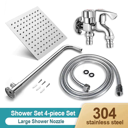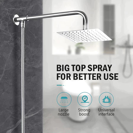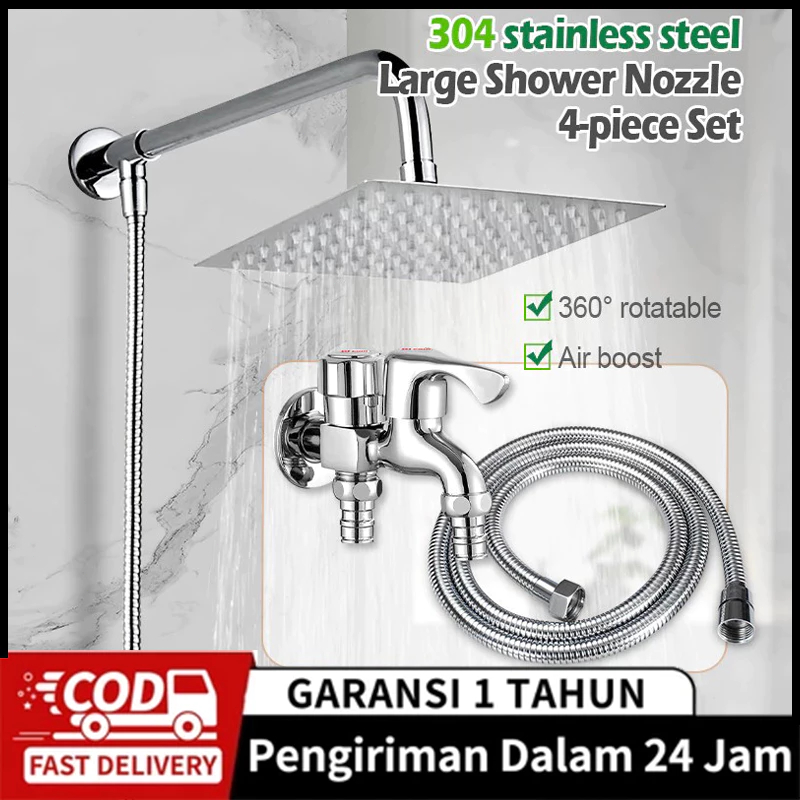 Paket Shower Head Shower Kamar Mandi Full Set Kran Cabang Shower 304 Stainless Steel Persegi 8 " dengan Kran Cabang
