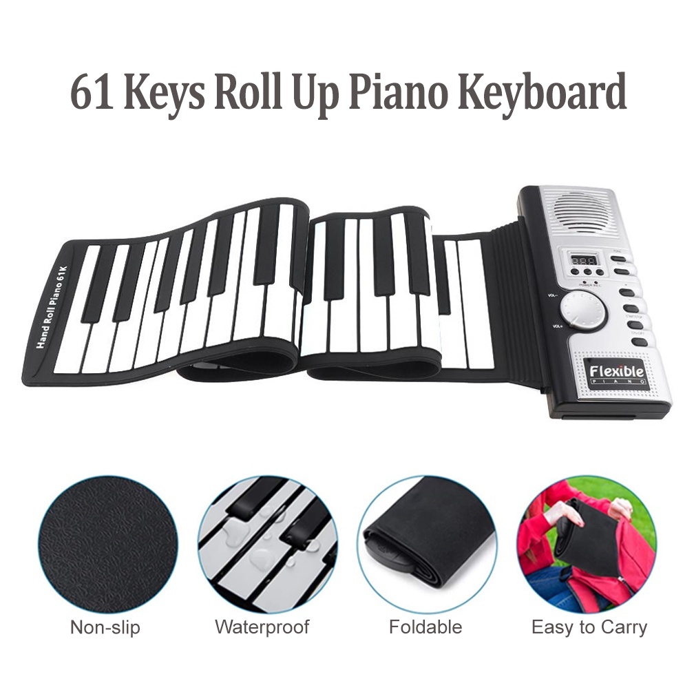 Rixton Portable Mini Electronic Keyboard Foldable Hand Roll Piano 49 Keys / 61 Keys Silicone Rubber