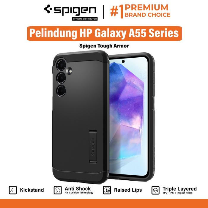 Case Pelindung Hp Case For Samsung Galaxy A55 Spigen Tough Armor Anti Shock Kickstand Casing - Black, A55