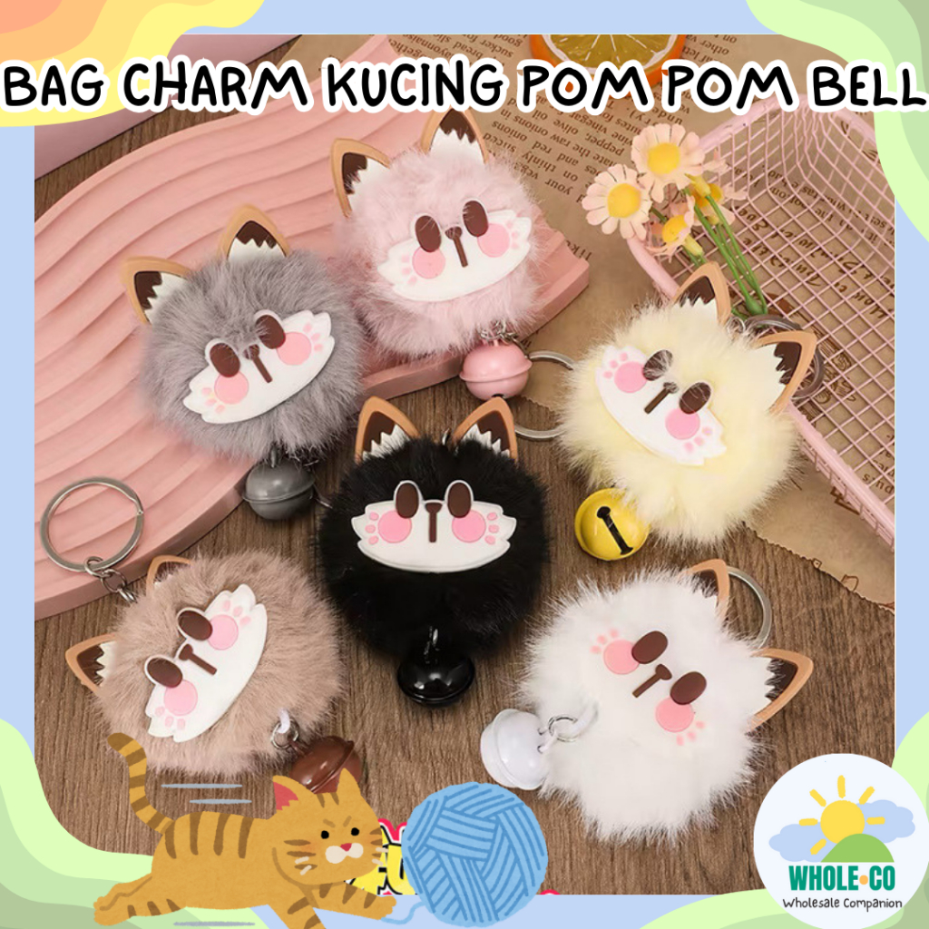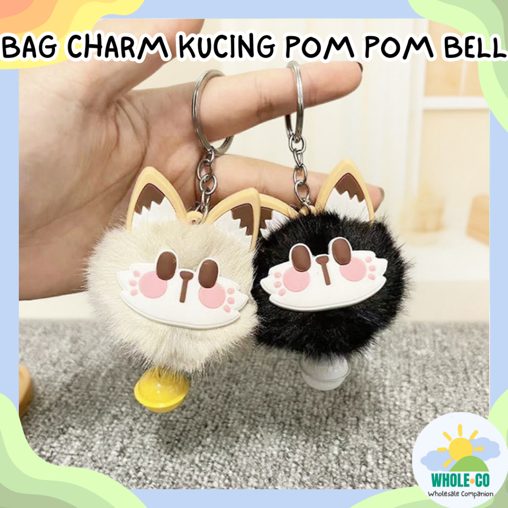 Gantungan Tas Boneka Kucing Pom Pom Bell Bulu Premium Bag Charm Cat Lonceng Keychain Kunci Lucu Unik Imut Termurah