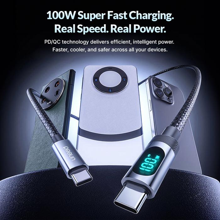 Uneed Smart Led Power Display Data Cable Qc Pd 100W For Type C To Lightning / Type C To Type C / Usb A To Type C - Ucb71