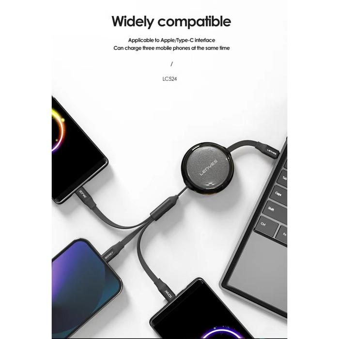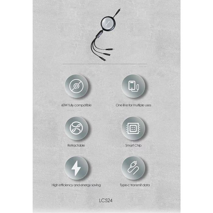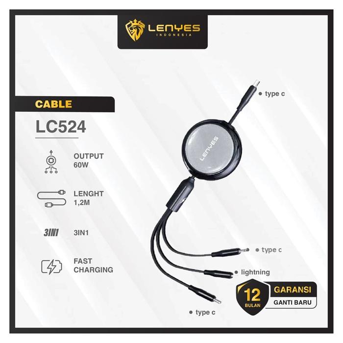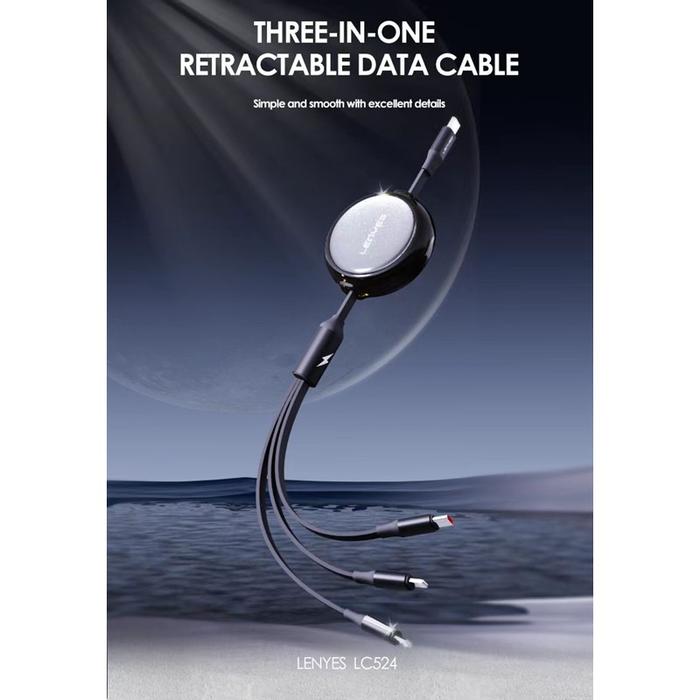 Lenyes Lc524 Kabel Data 3 In 1 Fast Charging 60W Data Cable Type C To Type C Lightning 1.2 Meter - Lc523