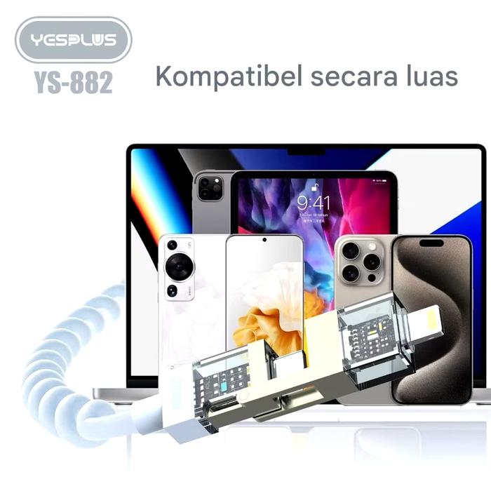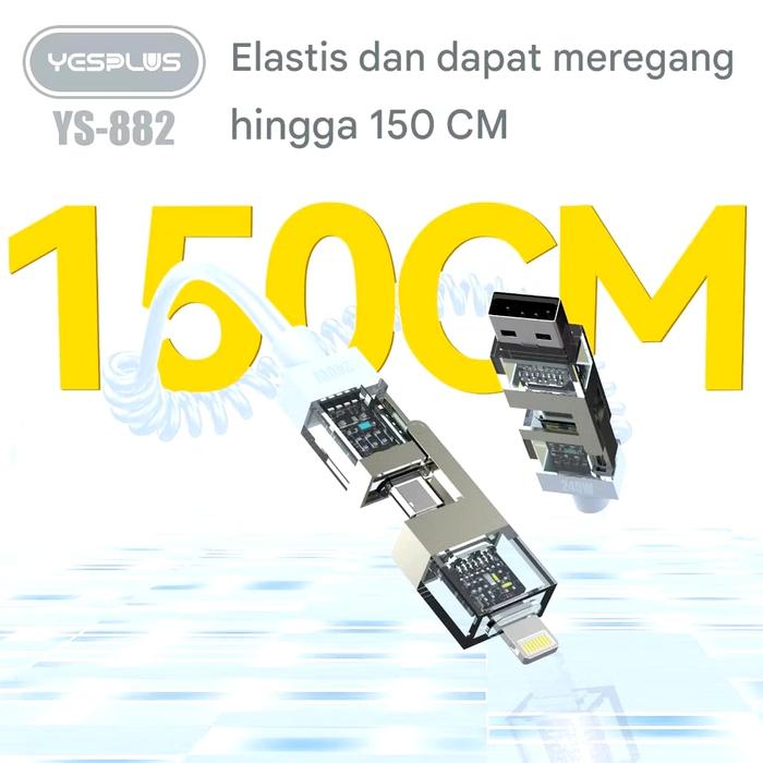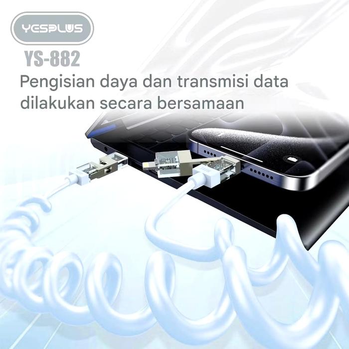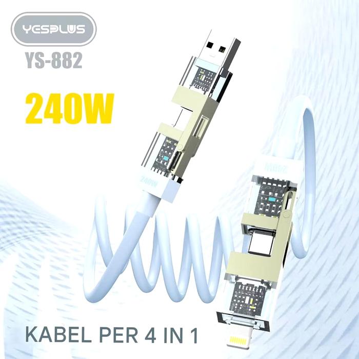 Yesplus Kabel Data Ys-882 Spiral 4-1 Pengisian Daya Cepat 240 Watt Usb Type C Lightning