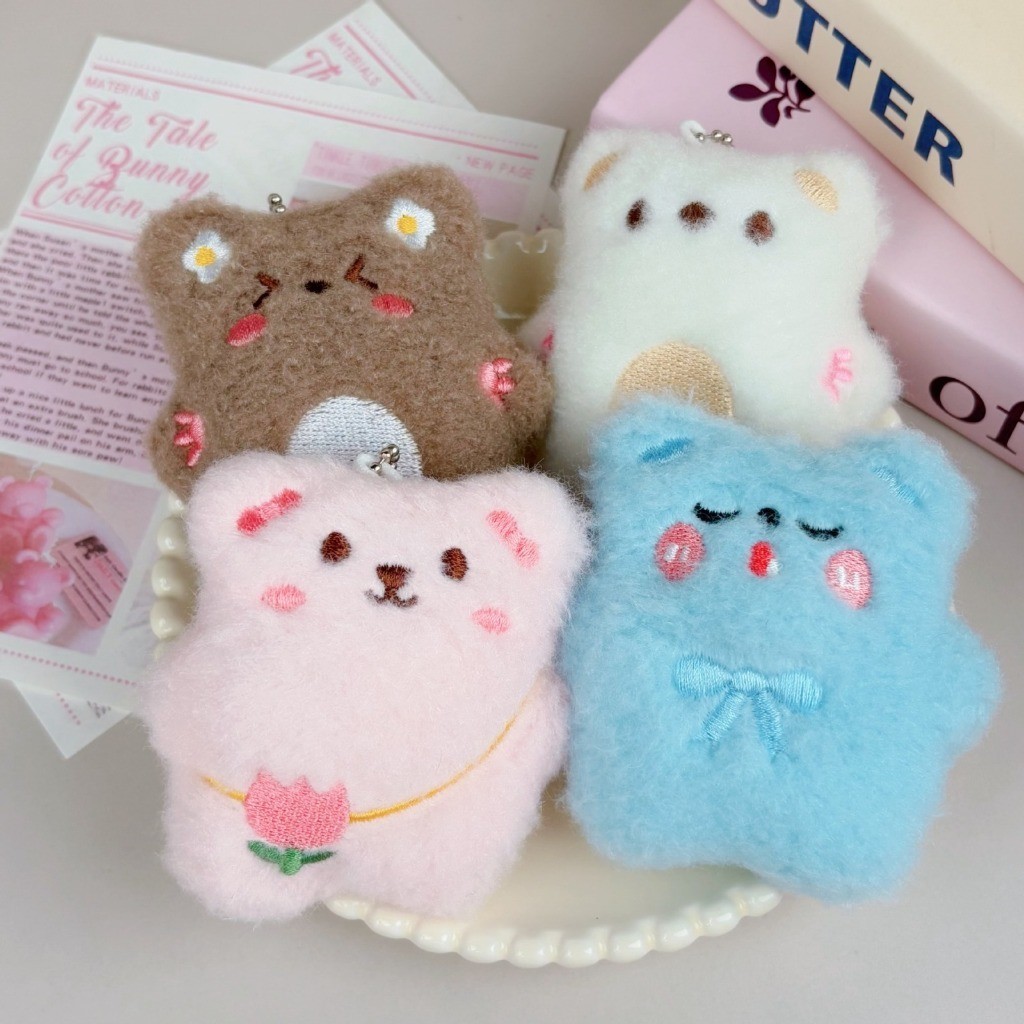 BORES Gantungan Kunci Tas Hiasan Boneka Beruang dengan Bulu Lembut Berbunyi Keychain Boneka Fluffy Aksesoris Gantungan
