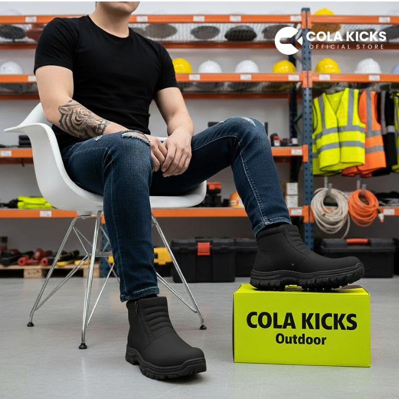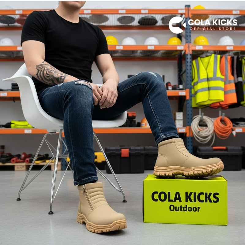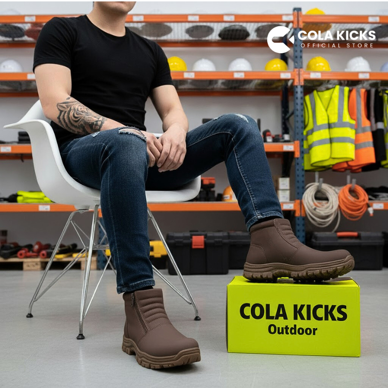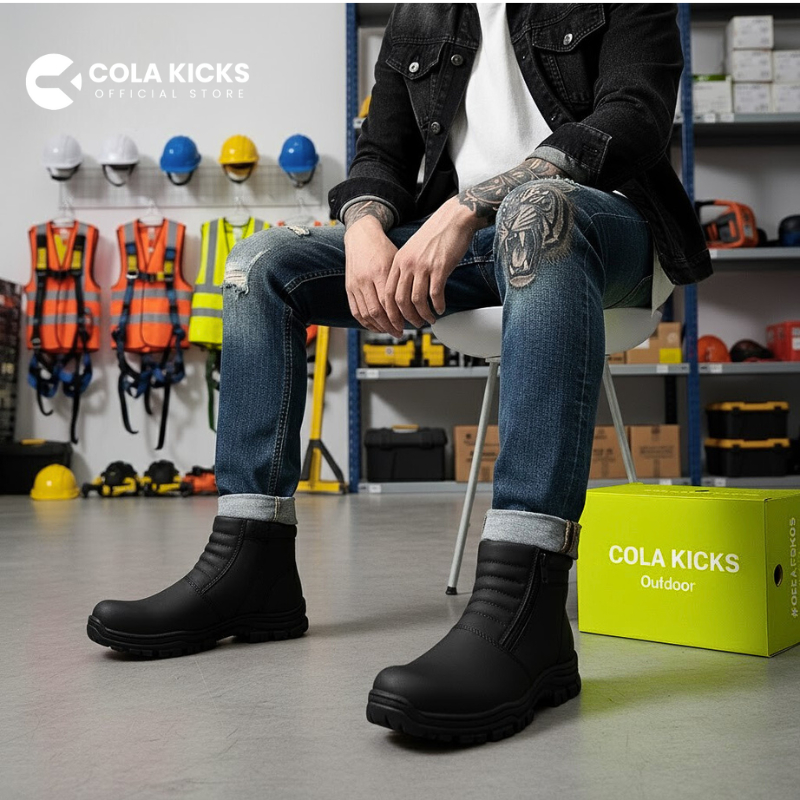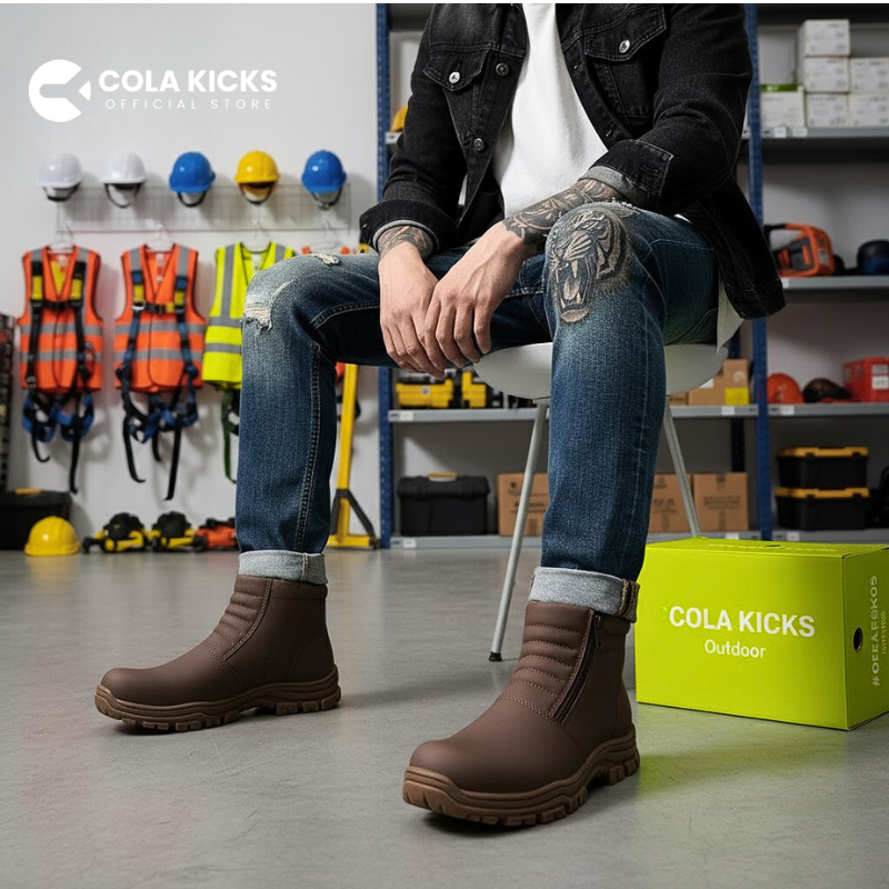 Sepatu Safety Pria Boots Slop Ujung Besi - Safety Slip on Sepatu Kerja Safety Boots Selop - Safety Shoes Slip On Pr