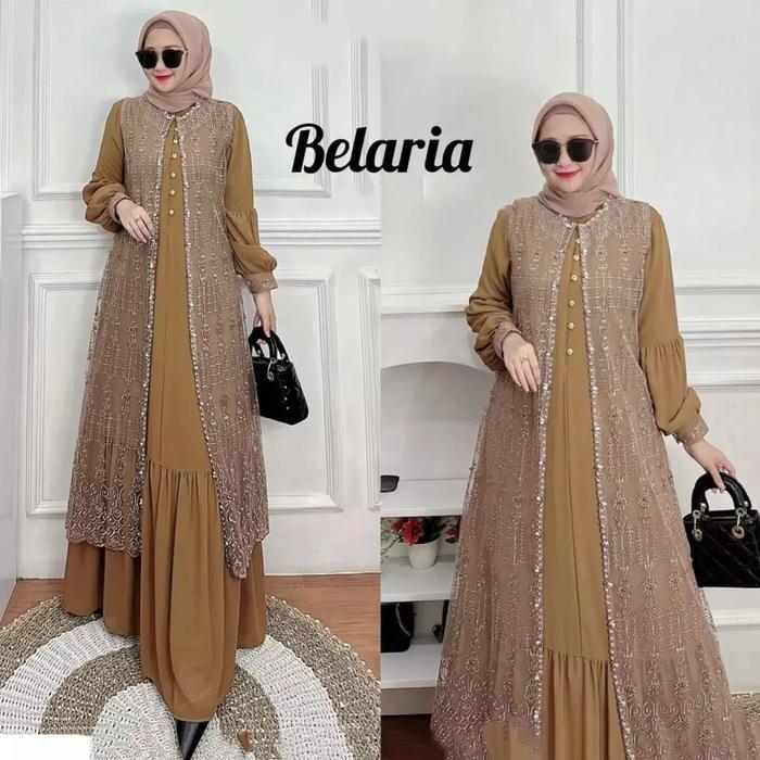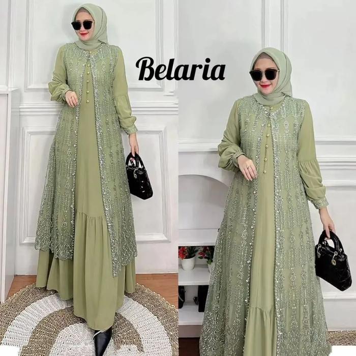 Belaria Dress Bahan Ceruty Babydoll Mix Brukat Mutiara Outer Kondangan Elegan Simple Terbaru Warna Sage Lavender Maroon
