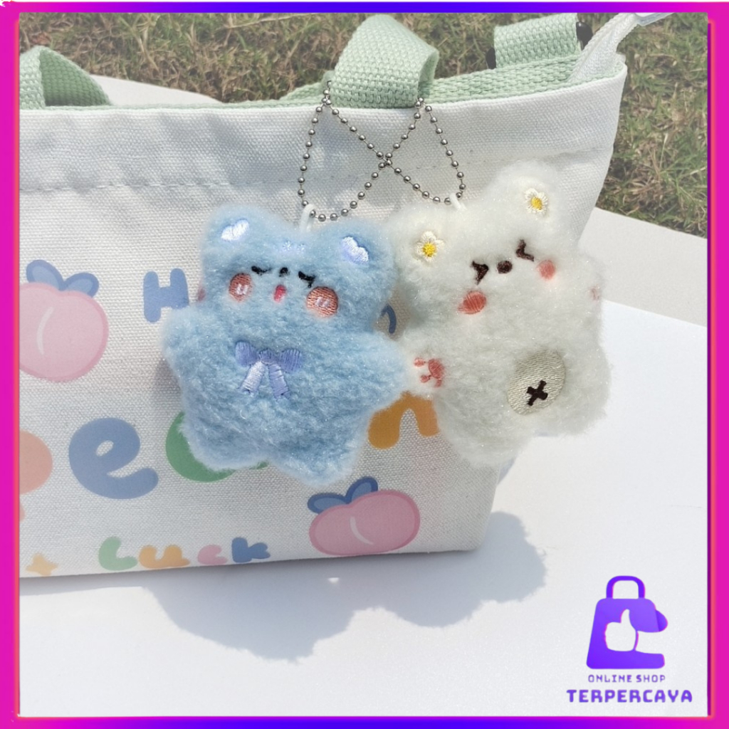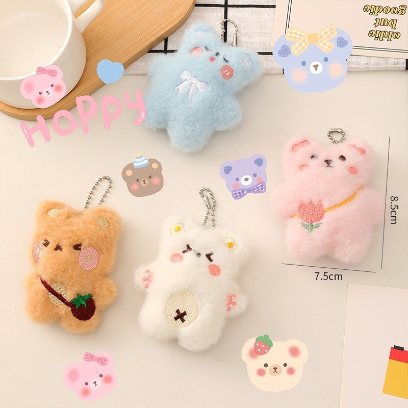 OST Gantungan Kunci Tas Hiasan Boneka Beruang dengan Bulu Lembut Berbunyi Keychain Boneka Fluffy Aksesoris Gantungan Tas