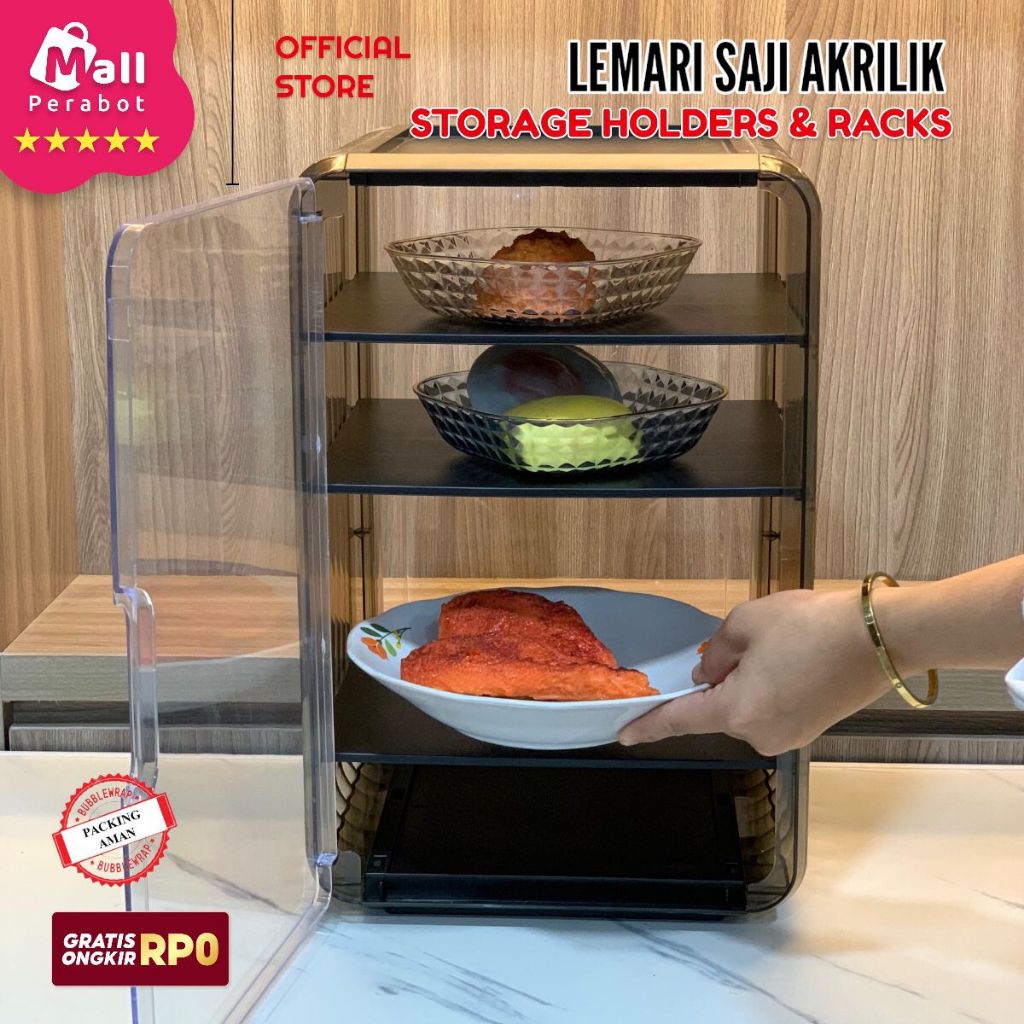 Lemari Plastik Lipat Susun/Rak Buku Serbaguna ada Roda/transparan Etalase Makanan Lemari Dapur Estetik Minimalis