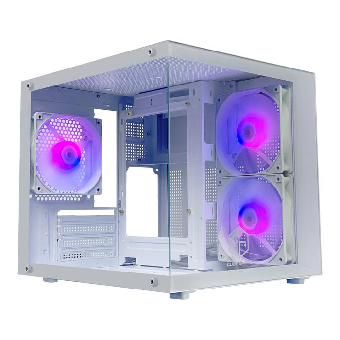 Cube Gaming Zareont White - Matx Gaming Case - All White Inside - Front & Left Side Tempered Glass / Casing Pc Gaming