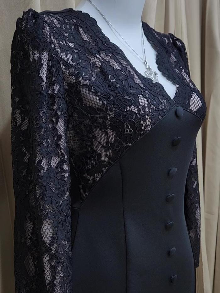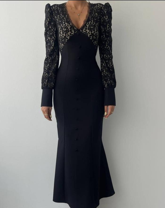 Loowear Luxury Maxi Dress Brukat Duyung Long Sleeve Premium Brokat Formal - Hitam