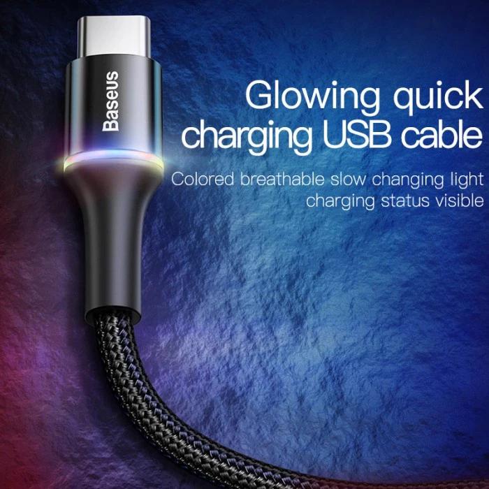 Baseus Kabel Data Halo Series Cable Usb Type-C Micro Lighting 3A 1M Fast Charging Black - Hitam, Type-C