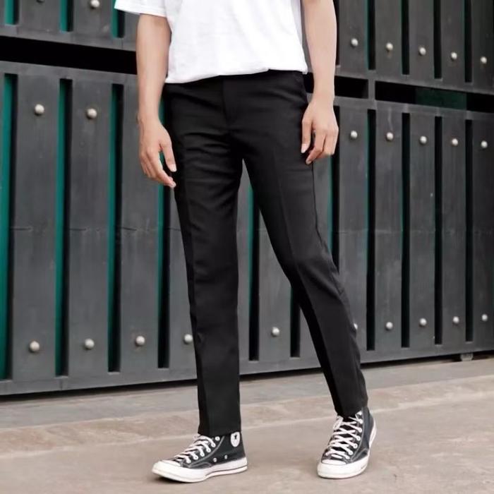 Celana Kantor Pria Slimfit Angkle Pants Semi Woll Formal Lembut Nyaman - Katun - Hitam, 27