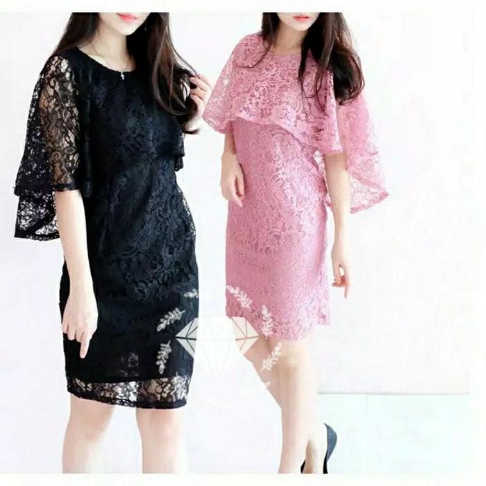 Wb 5 Ukuran M L Xl Xxl 3Xl Dress Fashion Brukat Alexia Brocade Kr Casual Layer Kondangan Brokat - Navy, M