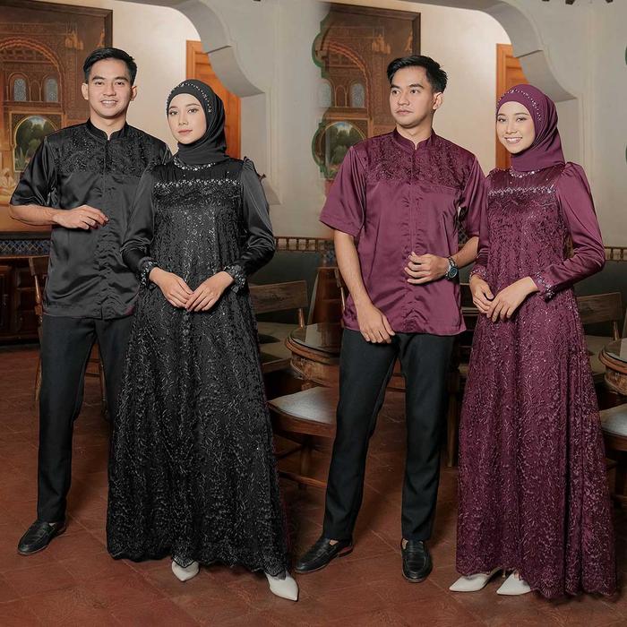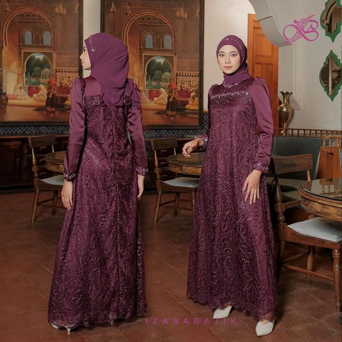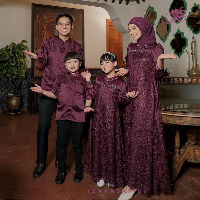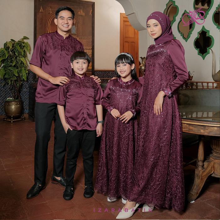 Izarabatik - Family Set Dress Sabrina Burgundy - Raya Collection Setelan Baju Couple Sarimbit Keluarga Muslim Lebaran -