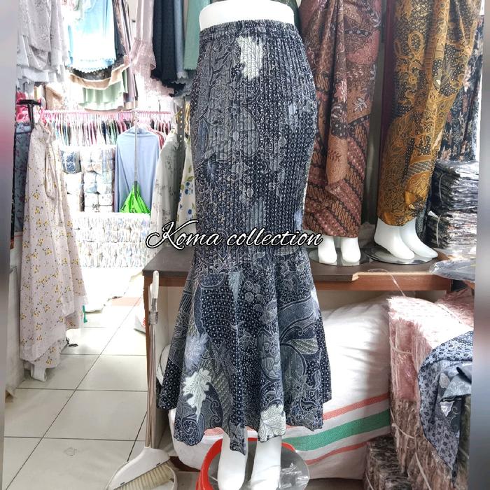 Rok Batik Duyung Plisket Kerasakti slver All Size S - Jumbo/Bahan Katun / Panjang / Bawahan Kebaya Wanita/ Hitam/ Nav