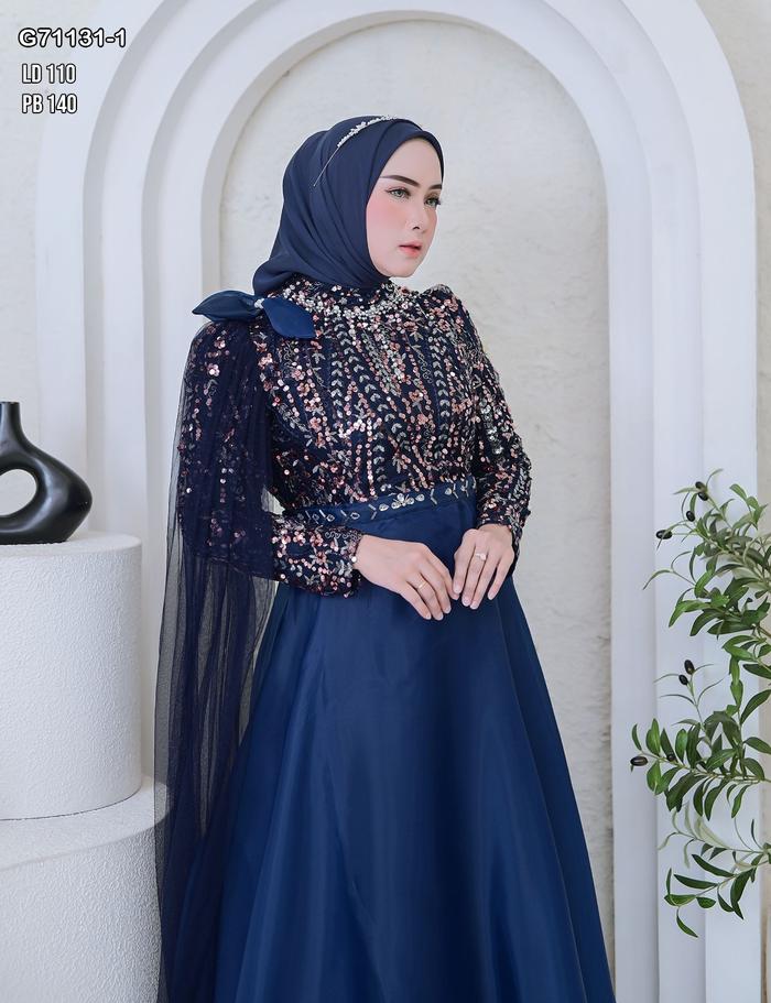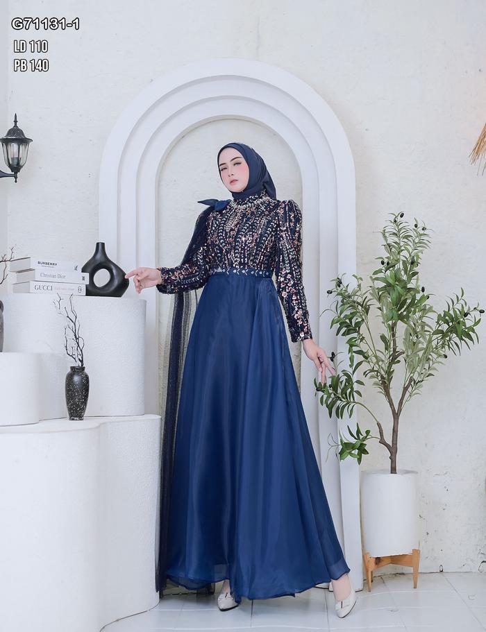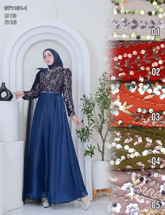 Kemilau Official - Gaun Zaleekha All Size Ld 110 - Dress Wanita Busana Muslim Kondangan Pesta Brukat Full Payet Spangle
