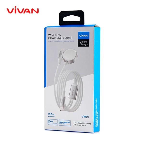 Vivan Vw01 Cable Data Charger 2 In 1 Wireless Magnetic For Iwatch Apple Watch Kabel Data Lightning 27W Usb-C 60W Fast Ch