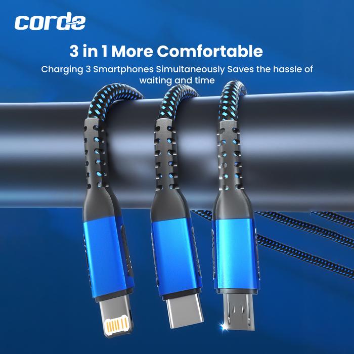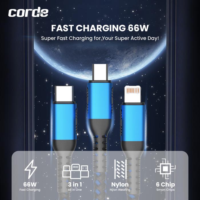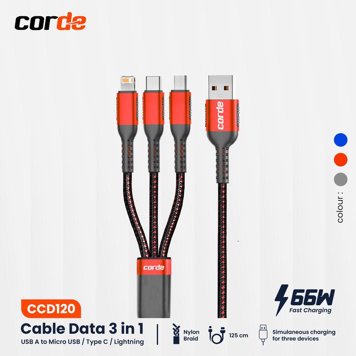 Corde Kabel Data 3 In 1 Fast Charging 66W Micro Usb Lightning Type C Panjang 1.25M Ccd120 Cable Charger - Abu Abu