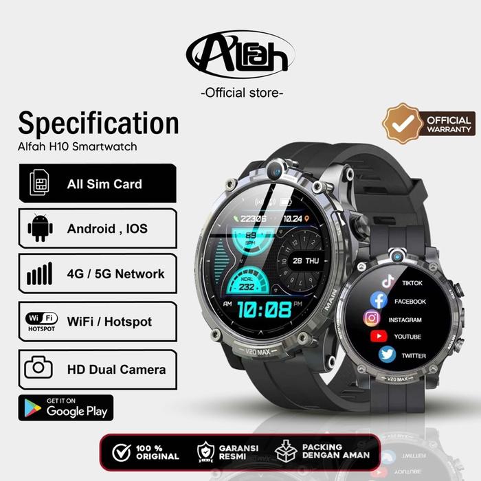 Smart Watch H10 1.39 Inch Android 8.1 With Gps Wifi - Black