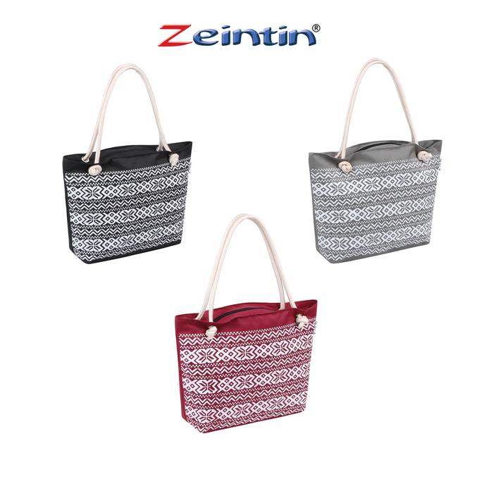 Zeintin - Tas Tote Bag Bahan Nylon Motif Estetic Selempang Bahu Wanita Setrip Totebag - Dm 1181 Hitam