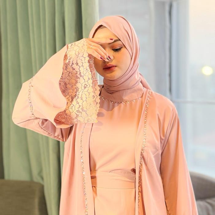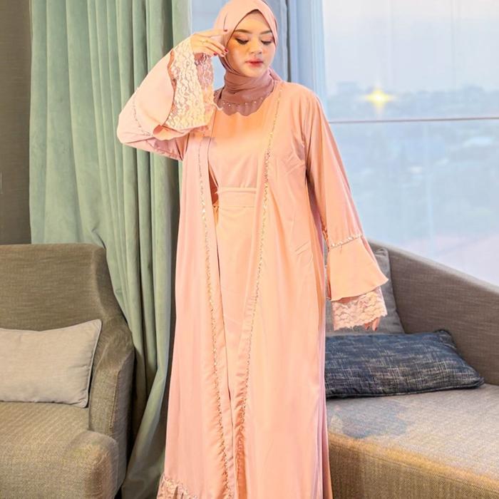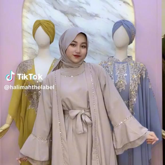 Halimah - Nameera Baju Gamis Abaya Turkey Arab Simple Elegan 2026 Idul Fitri Model Baru - Broken White
