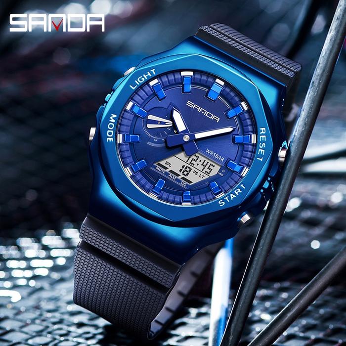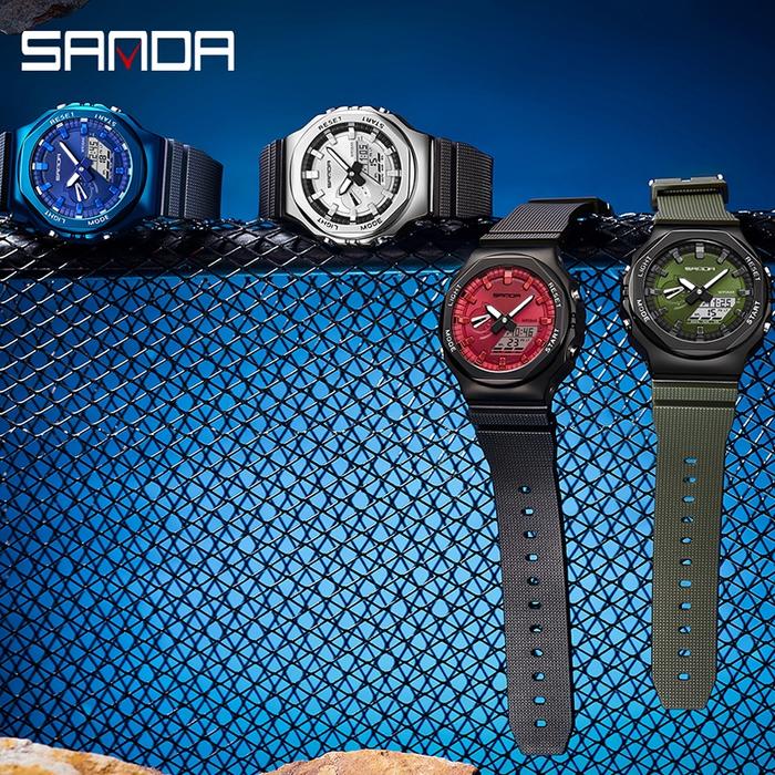 Jam Tangan Pria Wanita Digital Sport EL Backlight Tali Rubber Anti Air SANDA 3167