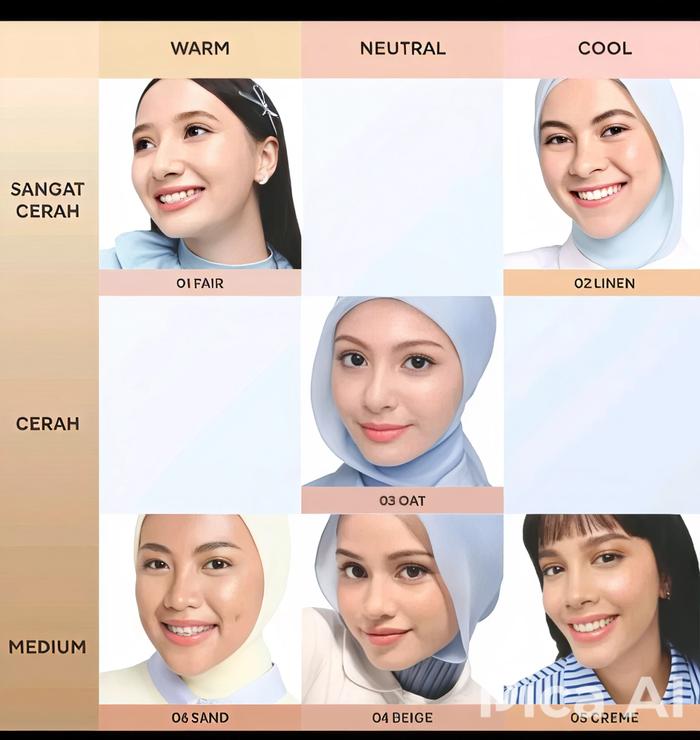 01 Fair, 02 Linen, 03 Oat, 04 Beige, 05 creme, 06 sand