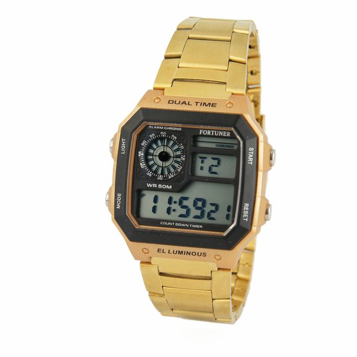 Fortuner Jam Tangan Pria Digital Water Resist Stainless Steel Camela Crystal Kaca
