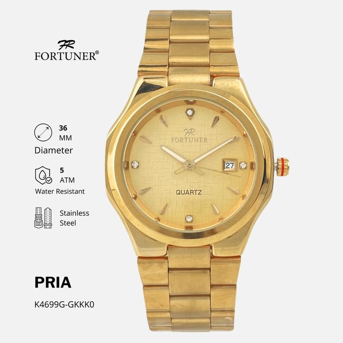 Fortuner Jam Tangan Fashion Deluxe Pria Analog Quartz Tahan Air Water Resistant Watch Rantai