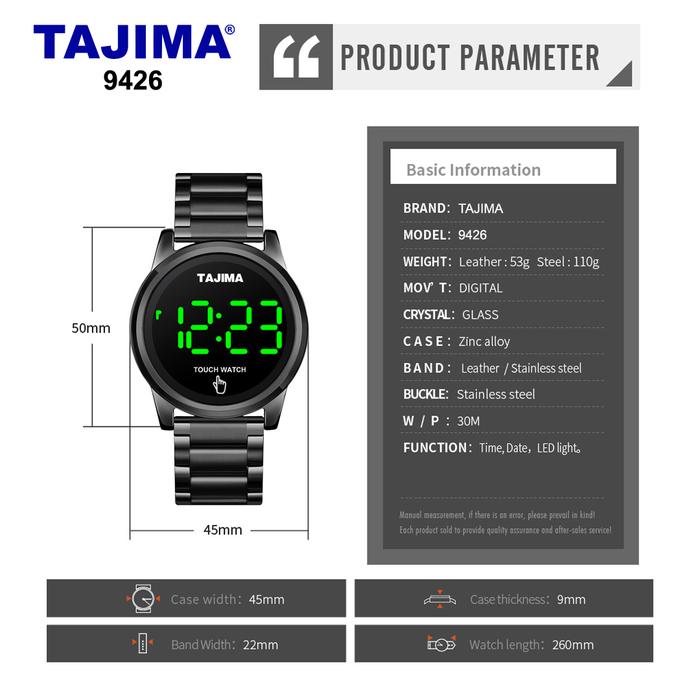 Jam Tangan Digital Touch Screen LED Tajima 9426 Tahan Air 50 Meter Garansi 1 Tahun Men Stainless