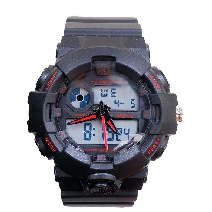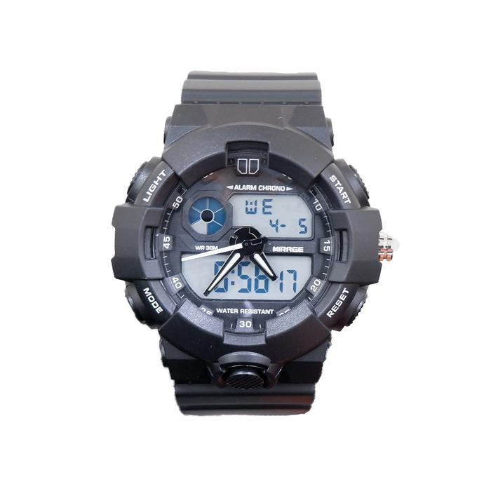 Mirage Watch - Original Jam Tangan Dual Time Pria Sporty Hitam Rubber 1172 M Tahan Air Kaca