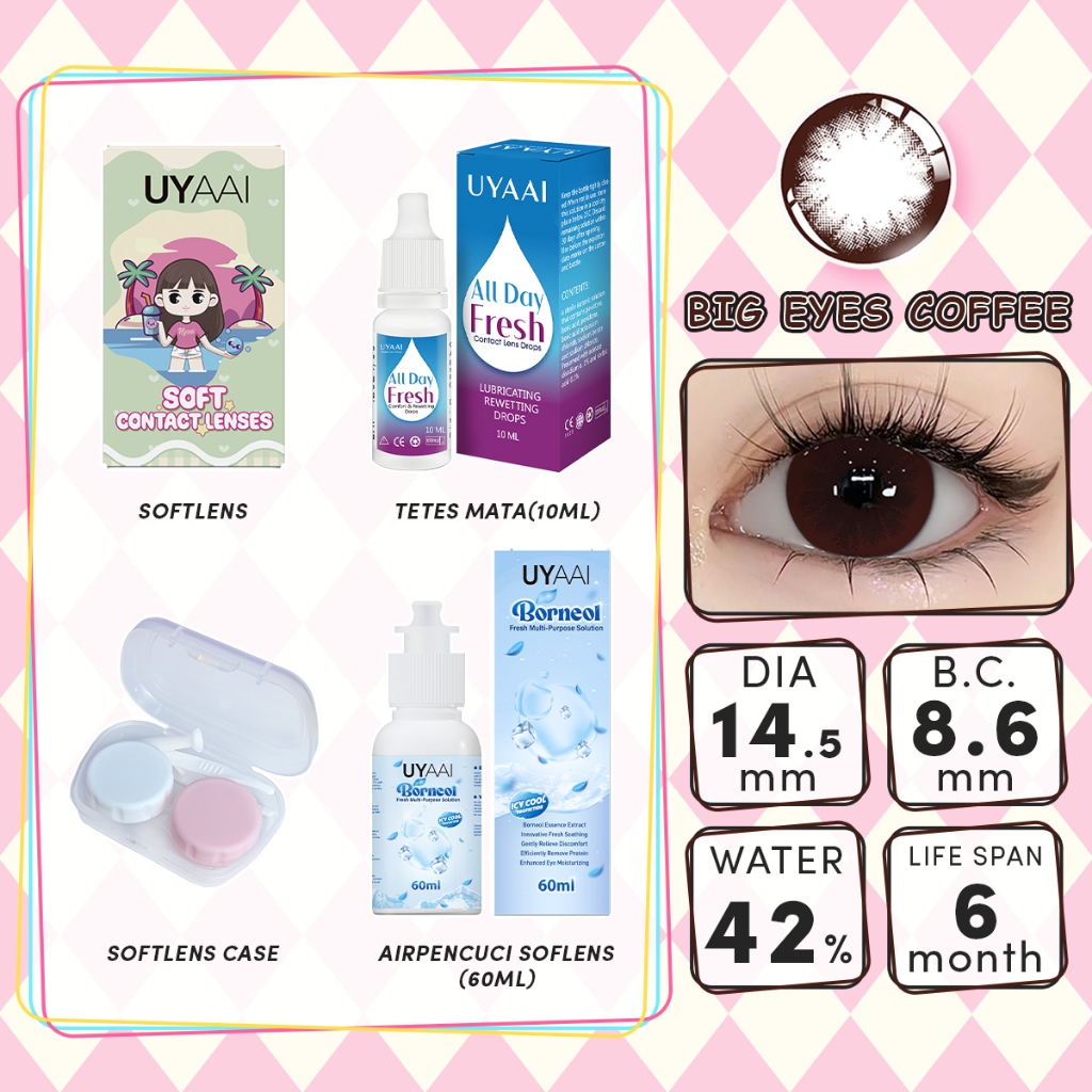 【Beli 1 Dapat 4 】Colorvista Softlens (0.00) 1 Softlens + Air Pencuci Softlens 60ml + Tetes Mata10ml + lens case