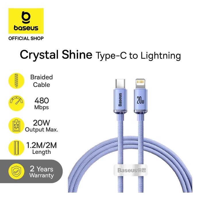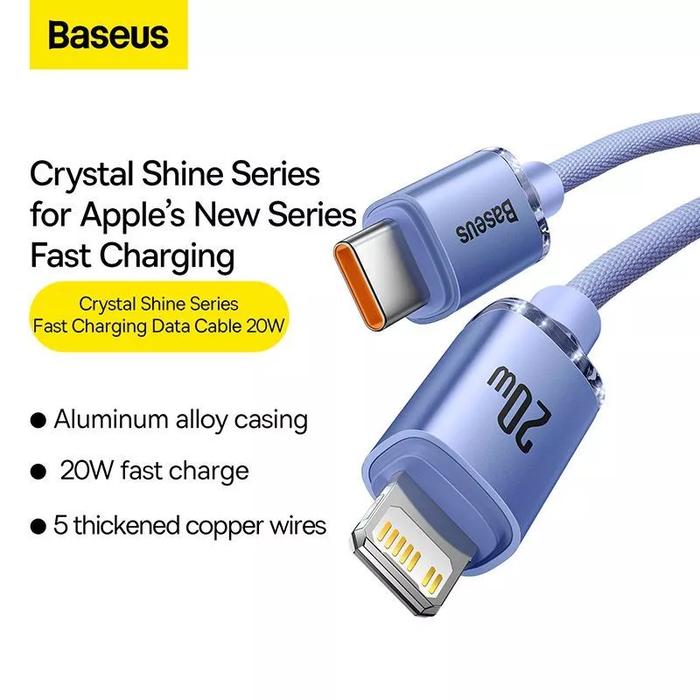 Baseus Kable Data Crystal Shine Series Type-C To Ip 20W Cable Fast Charging 1.2M & 2M - Pink 1.2M
