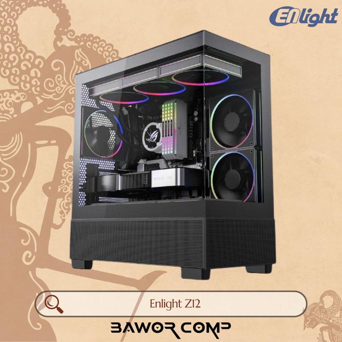 Casing Enlight Z12 Tempered Glass Black Include 3 Fan Rgb - Case Cpu Pc Gaming Micro Atx - Tanpa Fan