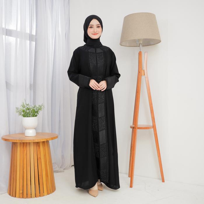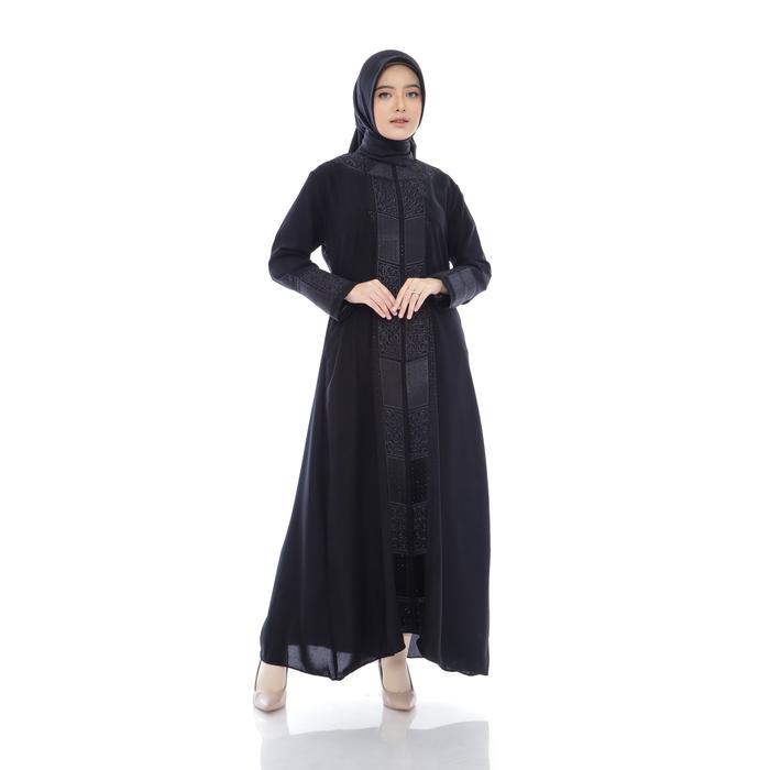 Suzie005 Dress Abaya Turkey Hitam Gamis Turki Muslim Remaja Dewasa Variasi Bordir Payet Bahan Kiara Jetblack - M