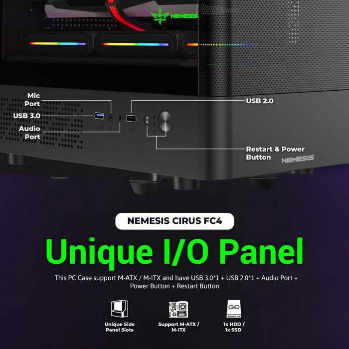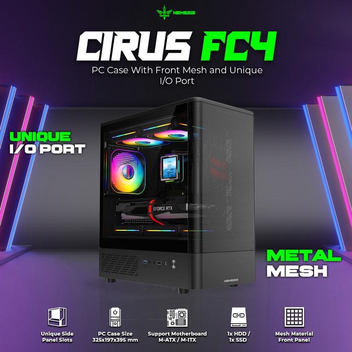 Pc Case Nyk Nemesis Cirus Fc-4 M-Atx M-Itx Gaming Case + Free 3 Fan Rgb
